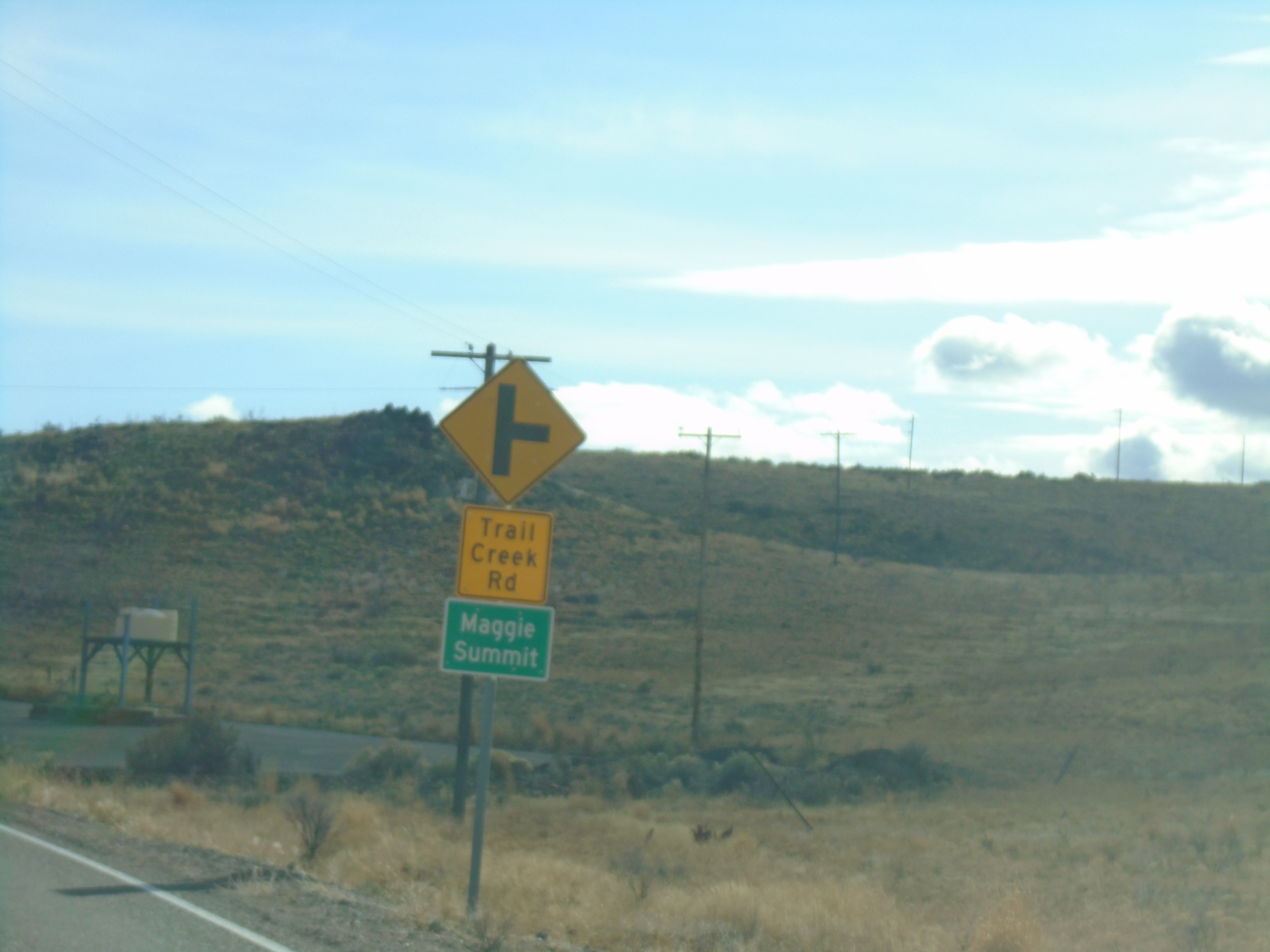 Leaving NV-225, the road is a good gravel that follows Trail Creek through some bottom land and assorted ranches. The road ascends to Maggie Creek Summit at 6066 Feet. From the summit, the road drops through numerous Aspen groves before crossing Columbia Creek on a causeway of sorts.