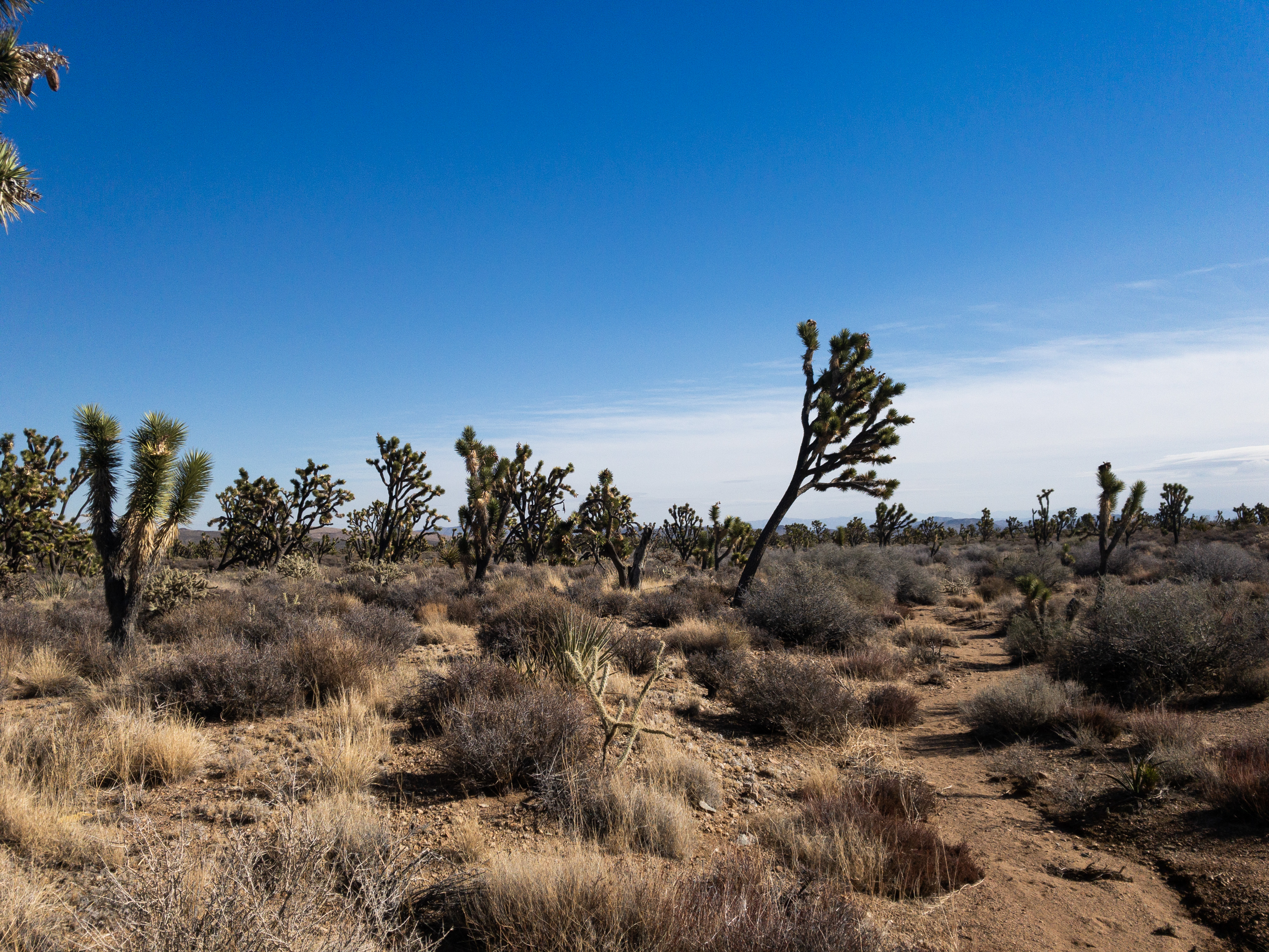 The Wee Thump Wilderness Area is a small patch of Joshua Tree forest adjacent to a highway. This is probably one of the easiest wilderness areas to get to, as there are no hikes in, and certainly no sketchy forest service roads. Simply pull of the highway into a parking area and walk through a gate to enter the Wee Thump.